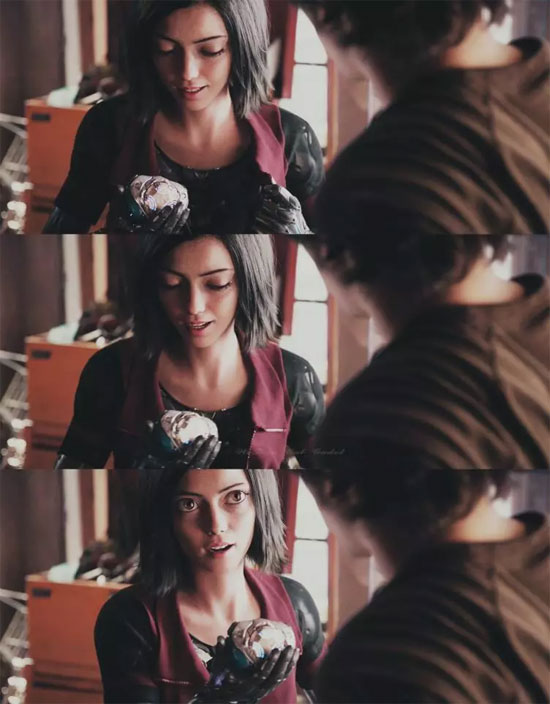 The visual achievements of “Alita” aren’t just about the characters’ appearance—they’re even more challenging in the details. The muscle folds and facial expressions during Alita’s first time eating an orange and her first kiss made me involuntarily mutter, “This is insane.”