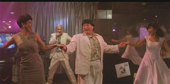The film can be divided into two parts. The first is the violent crime-solving process where Crazy Tiger and Mad Dragon face off against Liu Jiarong, filled with nonstop bloody and brutal fight scenes. During this part, Long Ming’en and Tai Bao don’t get a chance to be funny—they just get killed off. The climax culminates in Liu Chia-ying detonating a chemical plant with a gunshot, engulfing the floor in flames and burying the henchmen and villainous brothers alive. The two protagonists are left to clown around. As a child, I couldn’t grasp it, but reflecting as an adult, the sheer number of casualties is staggering. The comedic segment follows the duo’s Singapore trip, where they sing karaoke and hang out with local girls. Despite their age, the two leads surprisingly pull off a youthful romance vibe. After “Dragons Forever,” Sammo Hung once again showcases his masculine charm through song and dance—truly the most agile chubby star today. His dance moves leave the girls swooning, making it no surprise he captured the heart of a Miss Hong Kong in real life. As for Mak Ka, he showcases his singing voice. Known for his Shandong dialect and bald-headed persona in kung fu comedies, he’s actually a graduate of New York University—a true high achiever. Singing comes naturally to him. Thinking about this, it makes sense why his character, who seems utterly sleazy, always needs a dazzling girlfriend by his side.