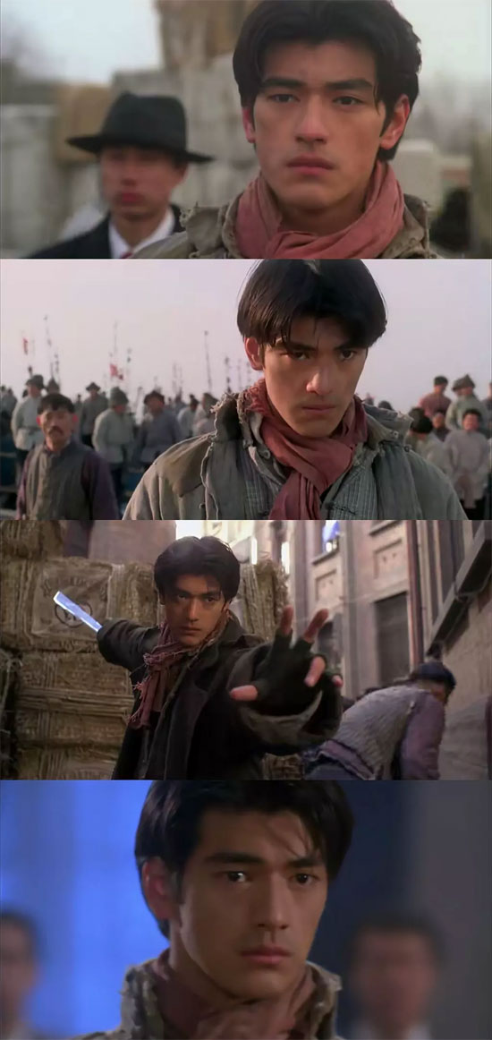 Wu’s charm in this series is uniquely captivating—the perfect embodiment of a heartthrob. Ma Yongzhen’s handsomeness feels like stepping straight out of a shonen manga, wielding dual pistols like Angel No. 1 Dawn from Fallen Angel. So cool! How could the young heartthrobs of that era be this gorgeous? qwq. I watched the dubbed version and suspect there’s no original audio—it’s a shame not to hear Wu’s deep bass voice. But imagine He Zhiwu—Wu’s voice leans more toward gentle than forceful. While he exudes coolness, there’s an underlying innocence and warmth. His original voice would probably sound adorable, haha. When he deceived Ma Yongzhen by saying Jin Lingzi married the boss, it instantly reminded me of “Ashes of Time.”