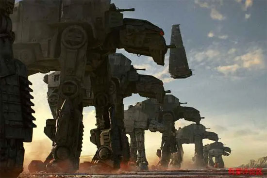 The First Order unleashed an army of AT-AT walkers carrying “mini-Death Star”-class superlasers to crush the Resistance, who retreated into an abandoned Rebel military base.